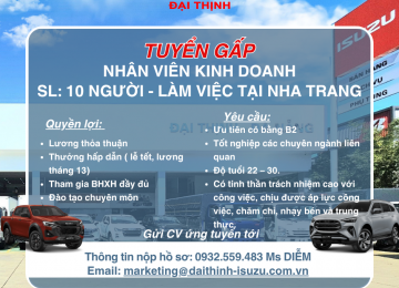 ISUZU ĐẠI THỊNH- CHI NHÁNH NHA TRANG - KHÁNH HÒA TUYỂN DỤNG NHÂN SỰ GẤP